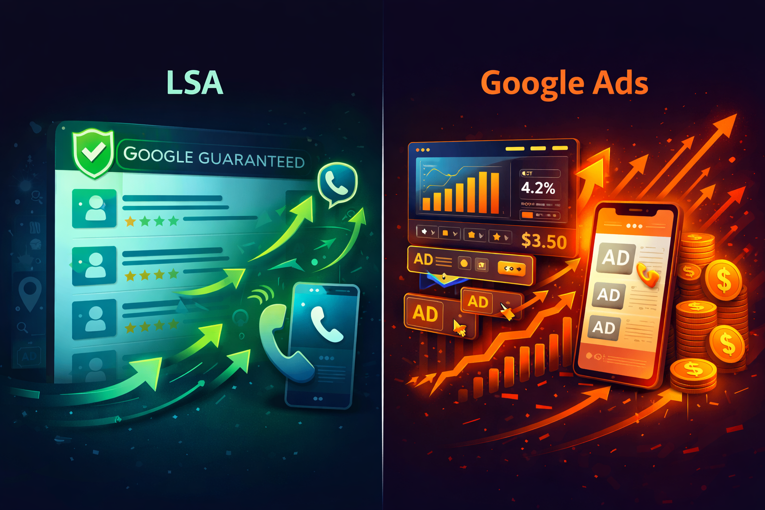 LSAs and Google Ads are both "paid," but they are structurally different systems. LSAs are a lead marketplace governed by trust and responsiveness. Google Ads is an intent marketplace governed by keywords, relevance, and conversion architecture.